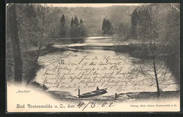 AK Bad Freienwalde a. O., Baa-See mit Boot