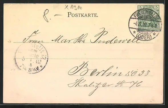 alte Ansichtskarte, gelaufen 1902, Eckknicke oben, guter Zustand