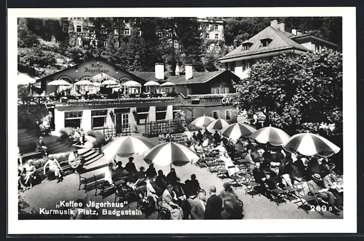 AK Bad Gastein, Kaffee Jägerhaus, Kurmusik-Platz