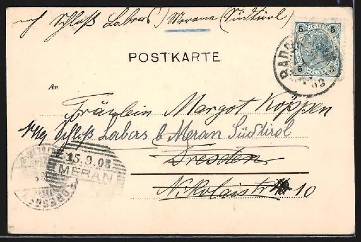 alte Ansichtskarte, gelaufen 1903, Eckknick oben li., guter Zustand