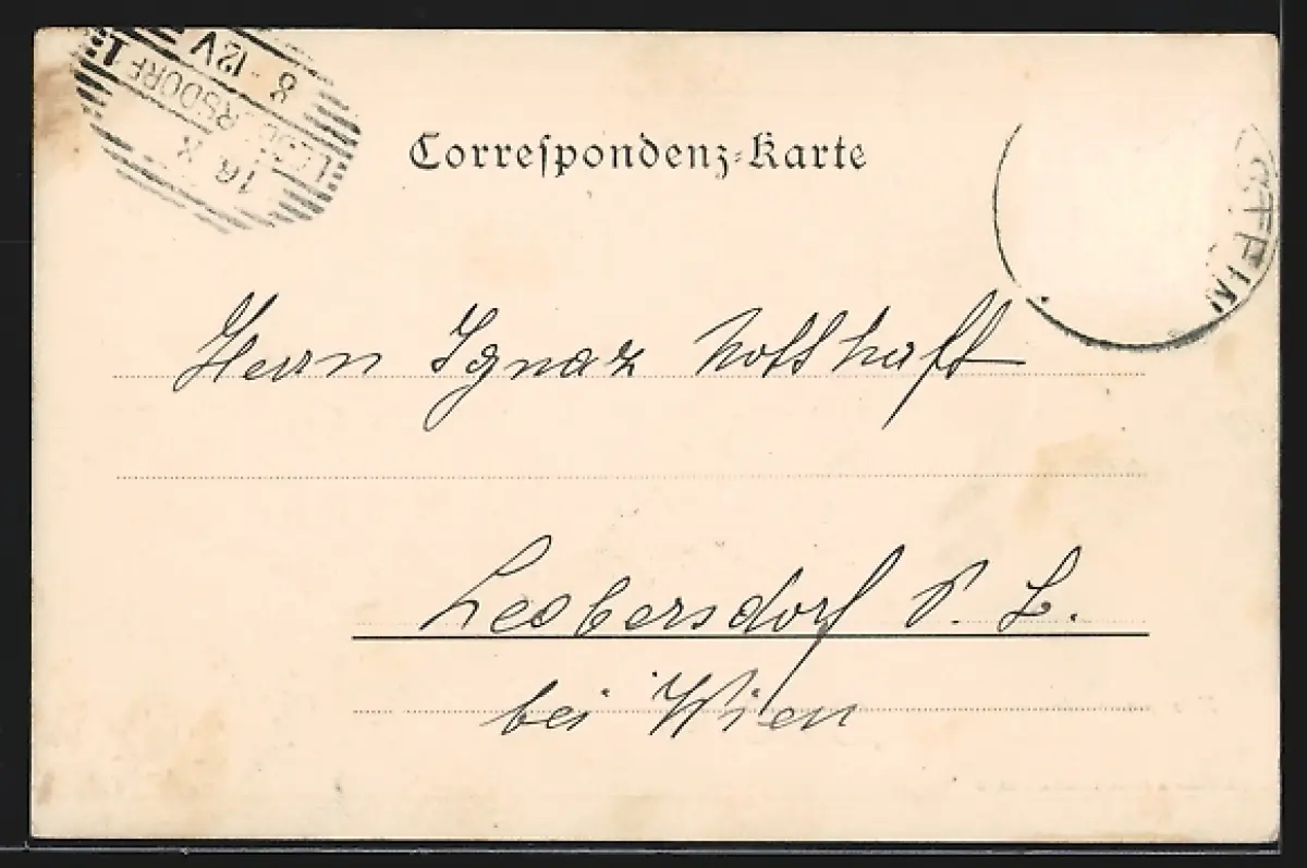 alte Ansichtskarte, gelaufen 1904, Briefmarke entfernt, rückseitig Oberflächenschaden, guter Zustand