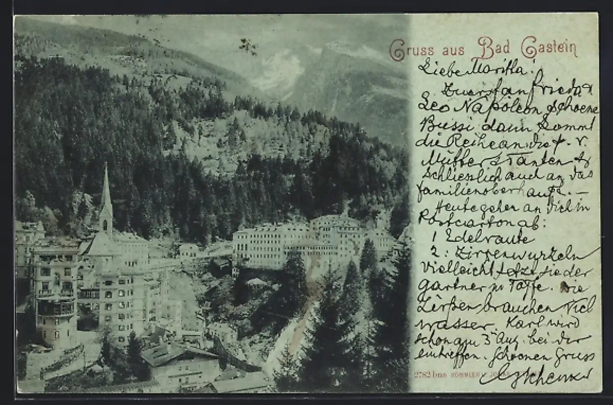 AK Bad Gastein, Teilansicht mit Kirche und Bergen