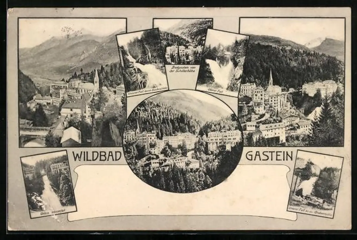 AK Bad Gastein, Unterer Wasserfall, Oberer Fall, Ortsansichten, Untere Fall beim Badeschloss