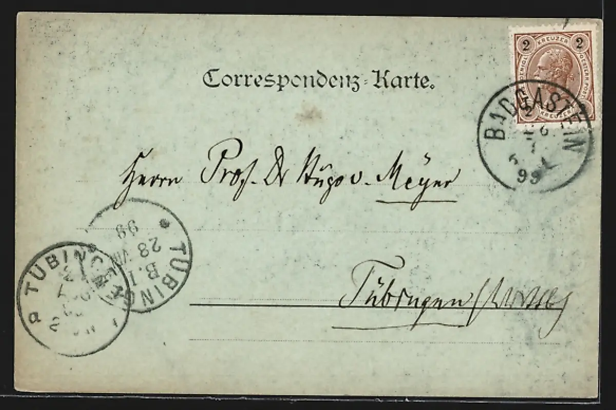 alte Ansichtskarte, gelaufen 1899, Eckknicke re., guter Zustand