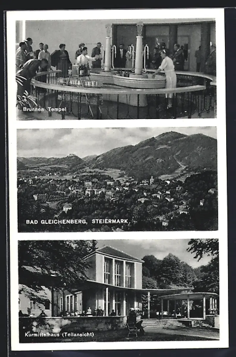 AK Bad Gleichenberg /Steiermark, Der Brunnen Tempel, Ortsansicht, Teilansicht Kurmittelhaus