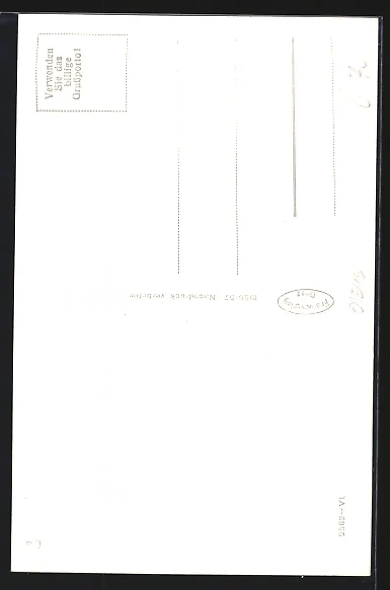 Personenbezogene Daten auf der Rückseite der Karte wurden durch blauen Textmarker unkenntlich gemacht. Die blauen Stellen sind auf die Vorderseite durchgeweicht und wirken sich negativ auf das Postkartenfoto aus