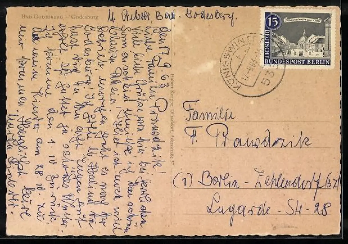 gelaufen 1963, Eckknick oben li., guter Zustand