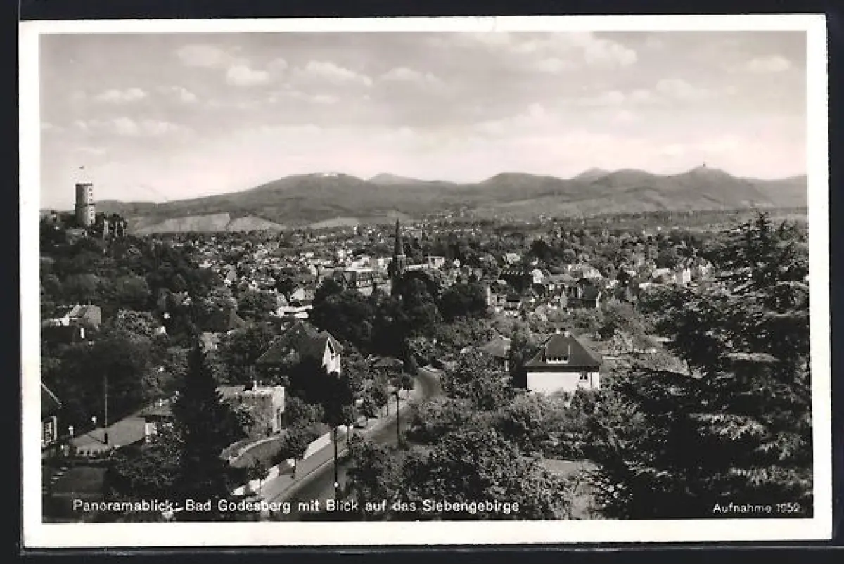 AK Bad Godesberg, Vogelschau mit Blick auf das Siebengebirge