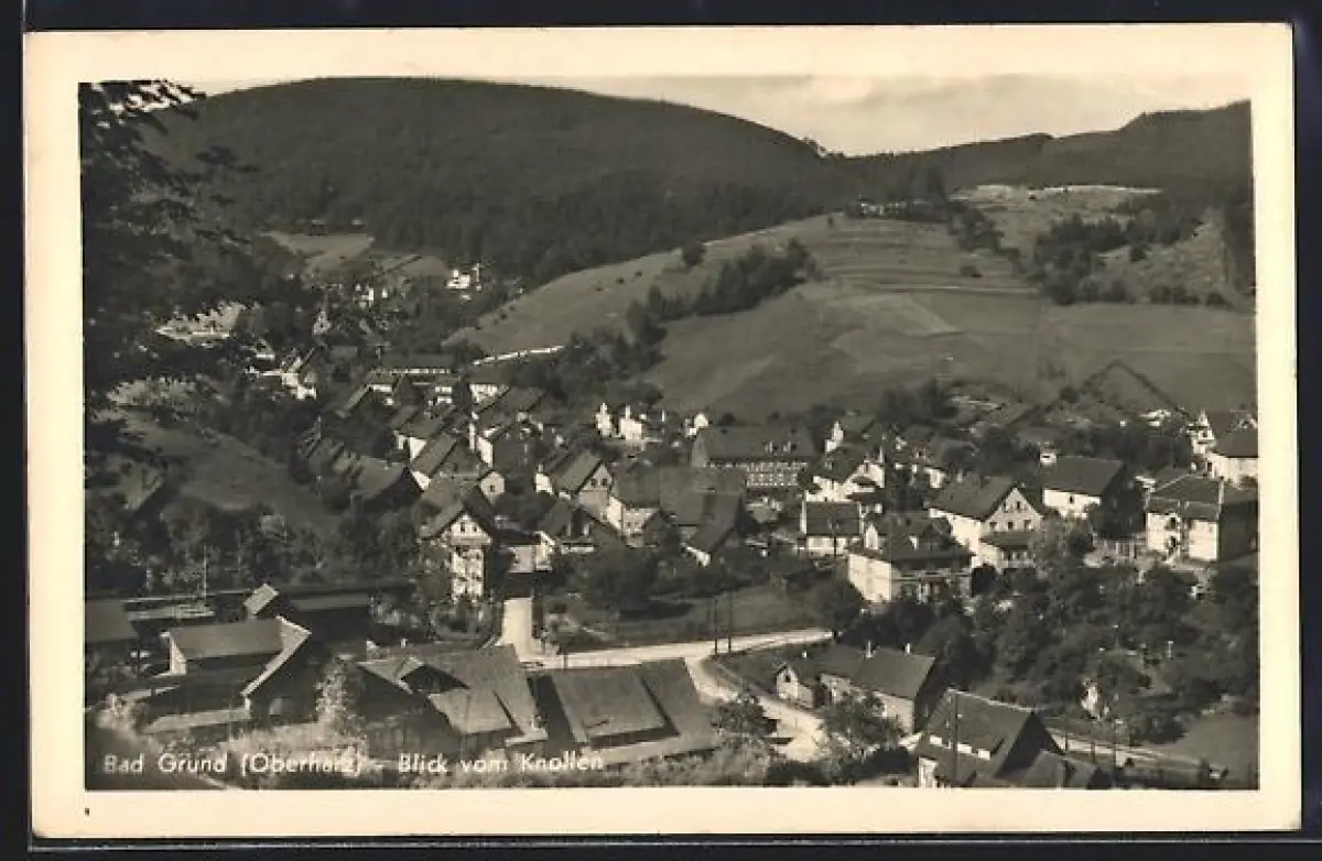 AK Bad Grund /Oberharz, Blick vom Knollen auf den Ort