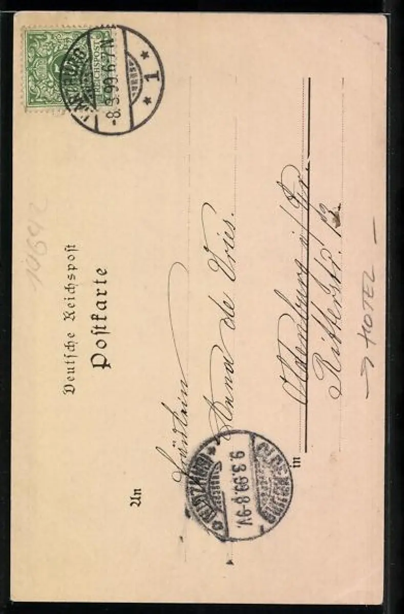 alte Ansichtskarte, gelaufen 1899, Eckknick li. unten, guter Zustand