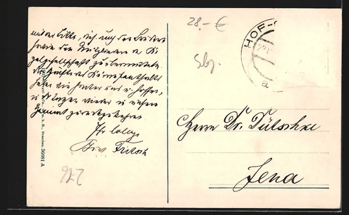 alte Ansichtskarte, gelaufen, Briefmarke entfernt, rückseitig Oberflächenschaden, guter Zustand