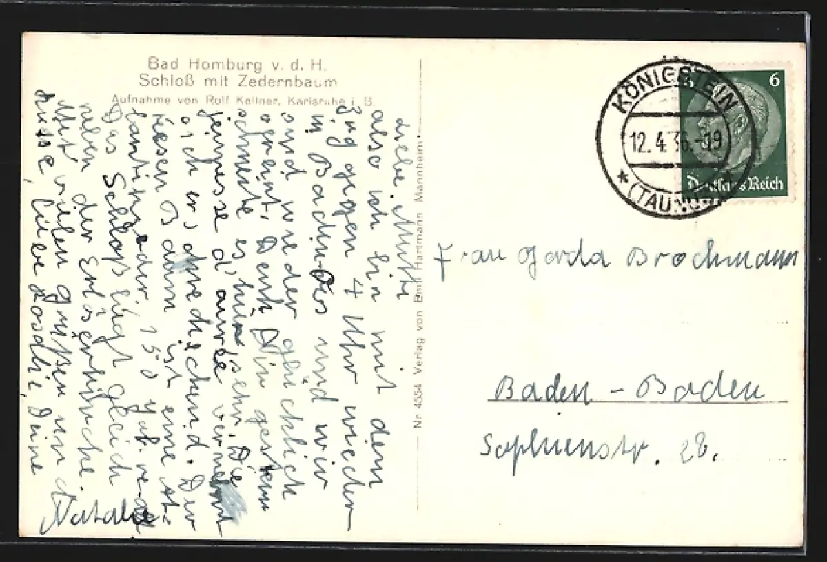 gelaufen 1936, Eckknick unten li., Stempelspur, guter Zustand
