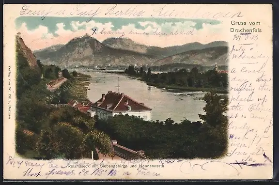 AK Bad Honnef, Siebengebirge mit Drachenfels, Rolandseck und Nonnenwerth