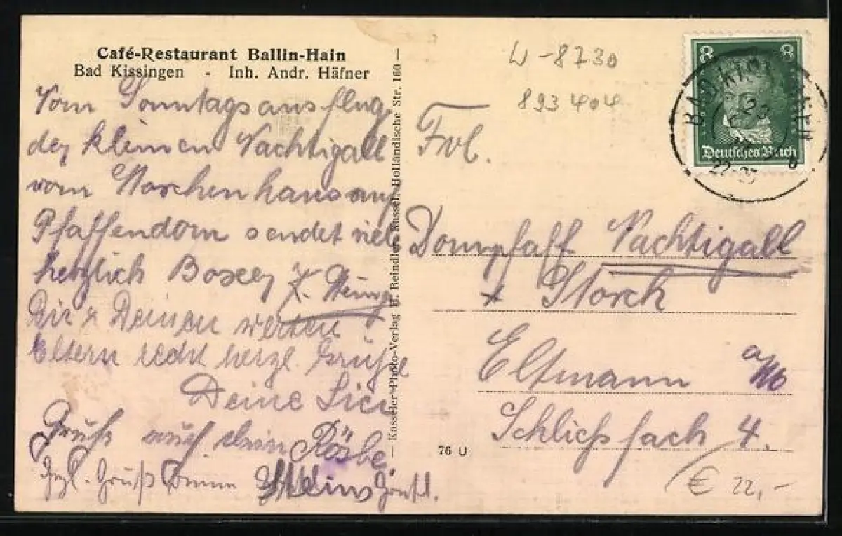 AK Bad Kissingen, Café-Restaurant Ballin-Hain, Inh. Andr. Häfner