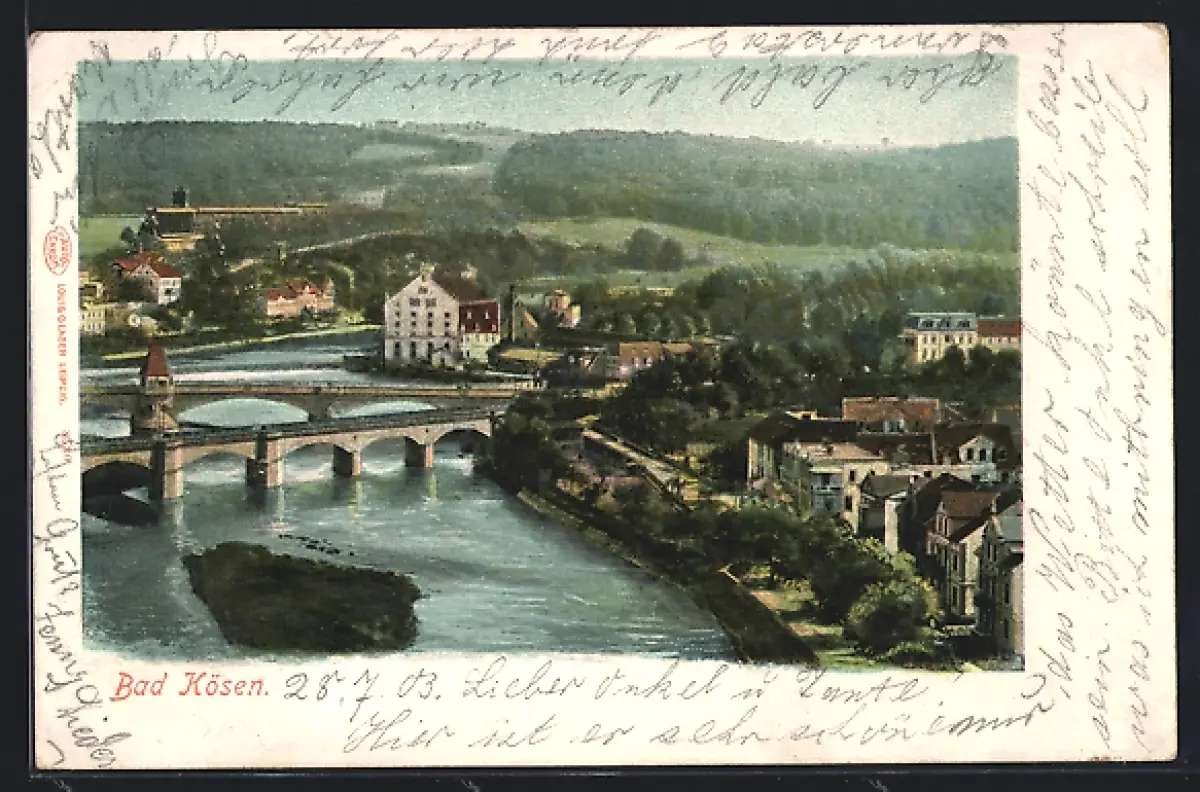 AK Bad Kösen, Brücke, Flusspartie, Ortsansicht