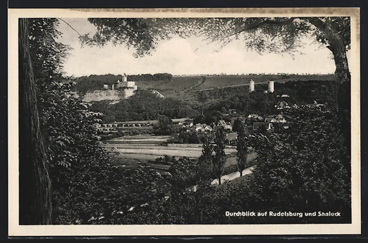 AK Bad Kösen, Durchblick auf Rudelsburg und Saaleck