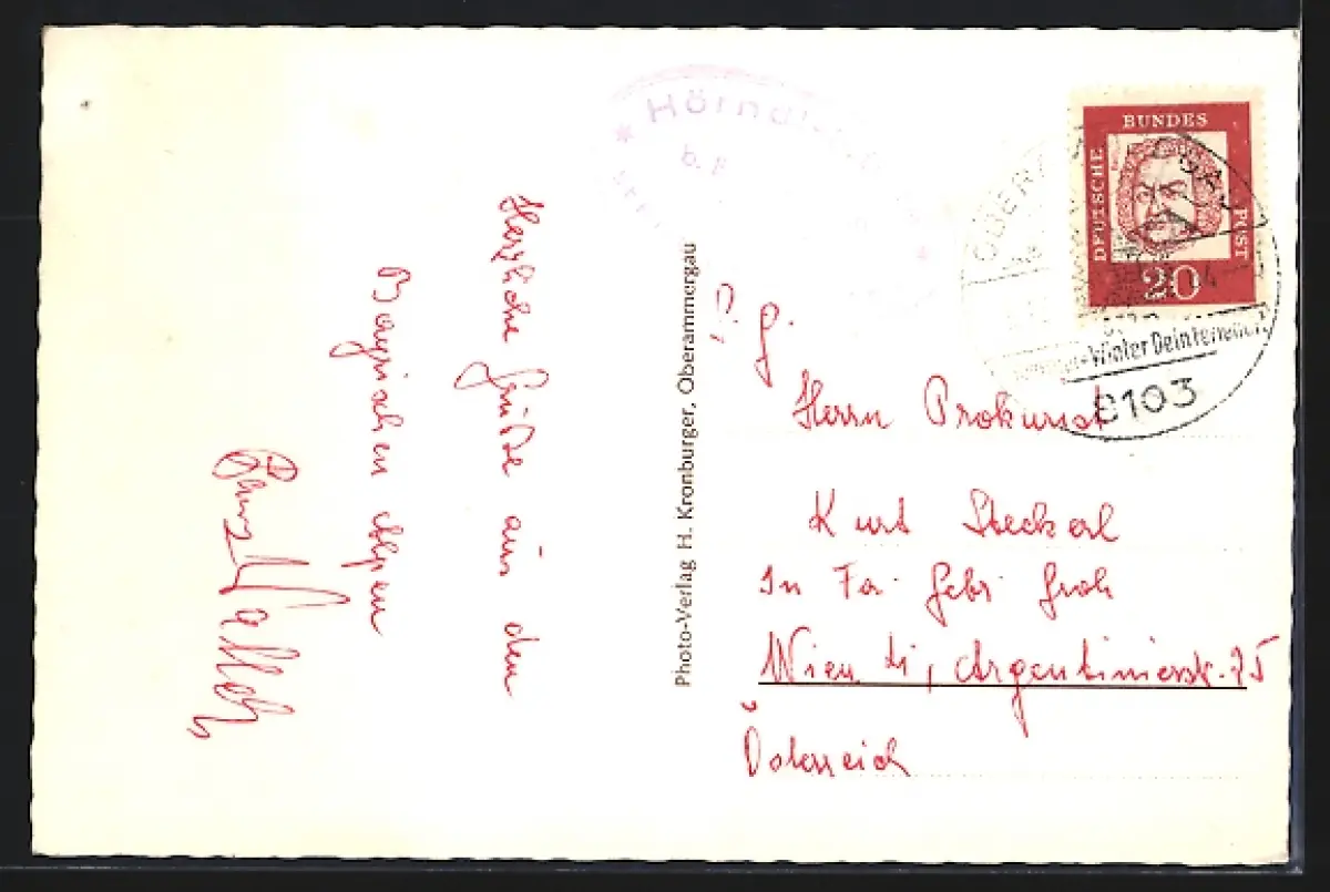 Personenbezogene Daten auf der Rückseite der Karte wurden durch blauen Textmarker unkenntlich gemacht. Die blauen Stellen sind auf die Vorderseite durchgeweicht und wirken sich negativ auf das Postkartenfoto aus