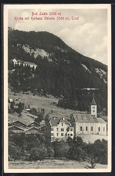 AK Bad Ladis, Kirche mit Kurhaus Obladis