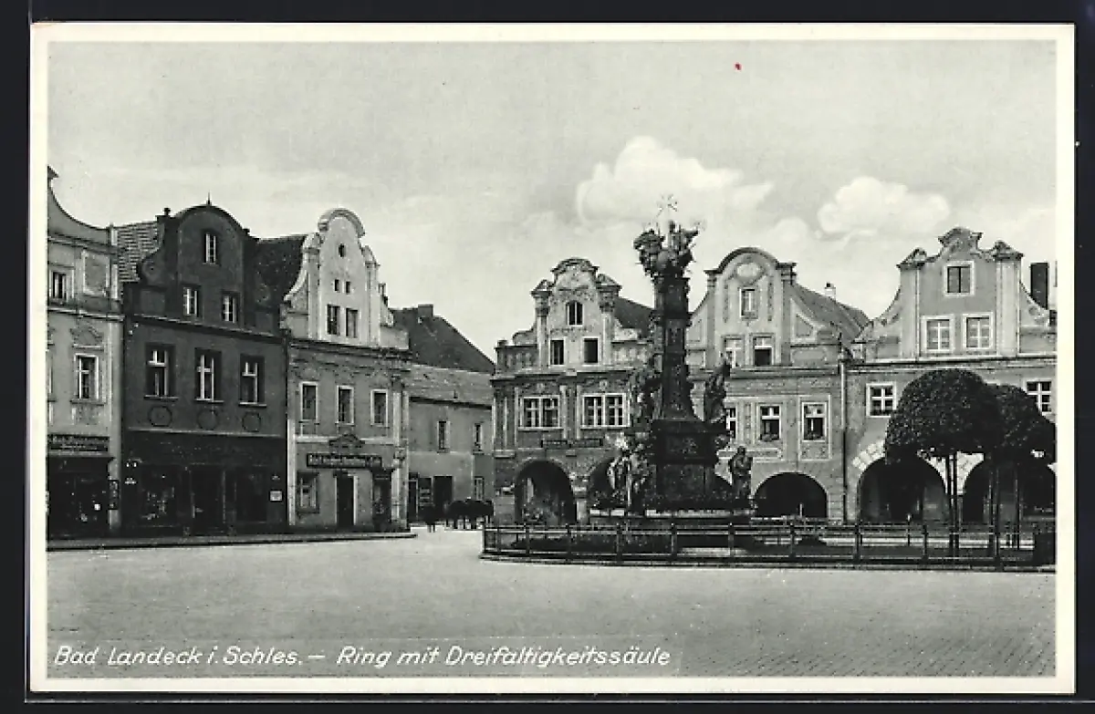 AK Bad Landeck, Ring mit Dreifaltigkeitssäule