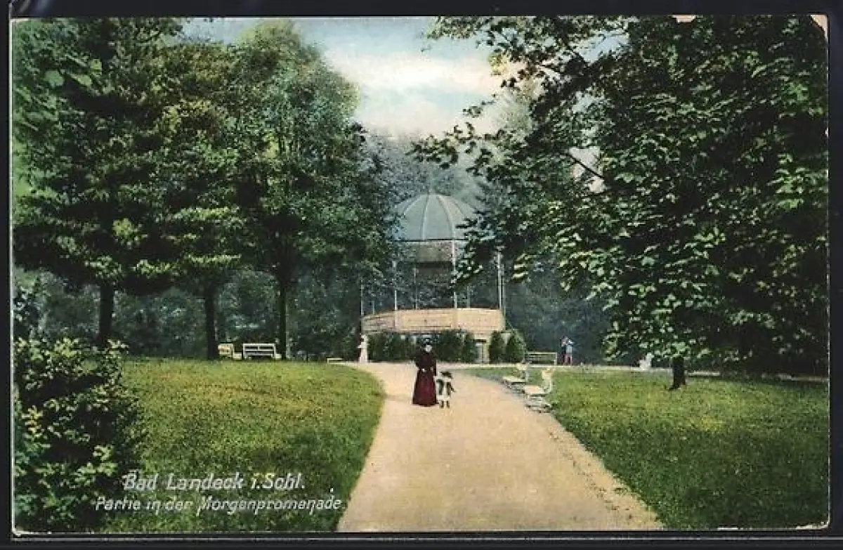 AK Bad Landeck i. Schl., Partie in der Morgenpromenade