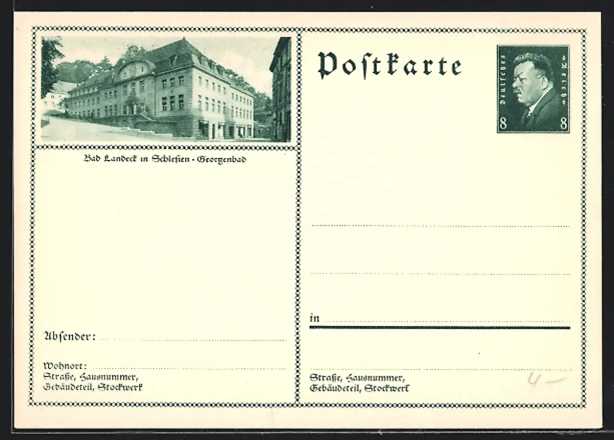 AK Bad Landeck in Schlesien, Georgenbad, Ganzsache