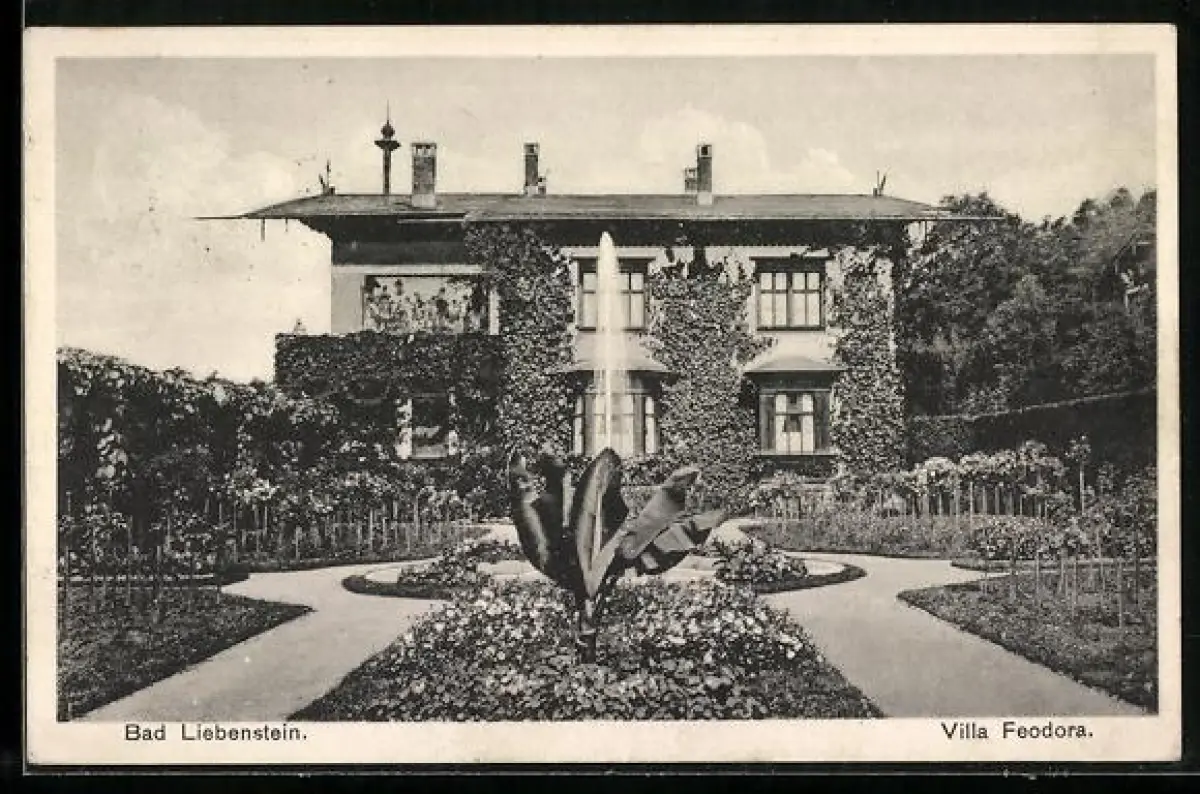 AK Bad Liebenstein, Villa Feodora mit Grünanlagen und Brunnen