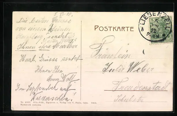 alte Ansichtskarte, gelaufen 1912, guter Zustand