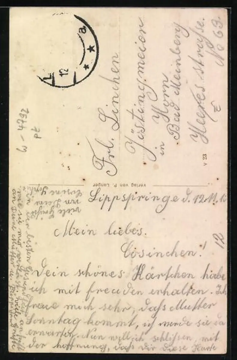 alte Ansichtskarte, gelaufen, Briefmarke entfernt, guter Zustand