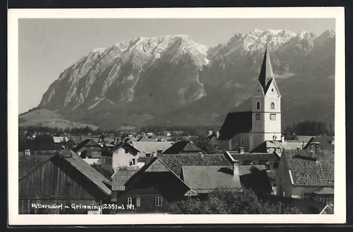 AK Bad Mitterndorf, Teilansicht mit Kirche und Grimming