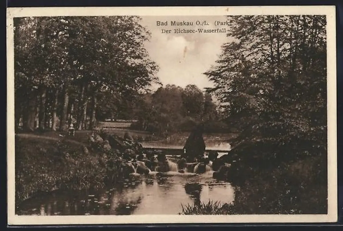 AK Bad Muskau, Der Eichsee-Wasserfall