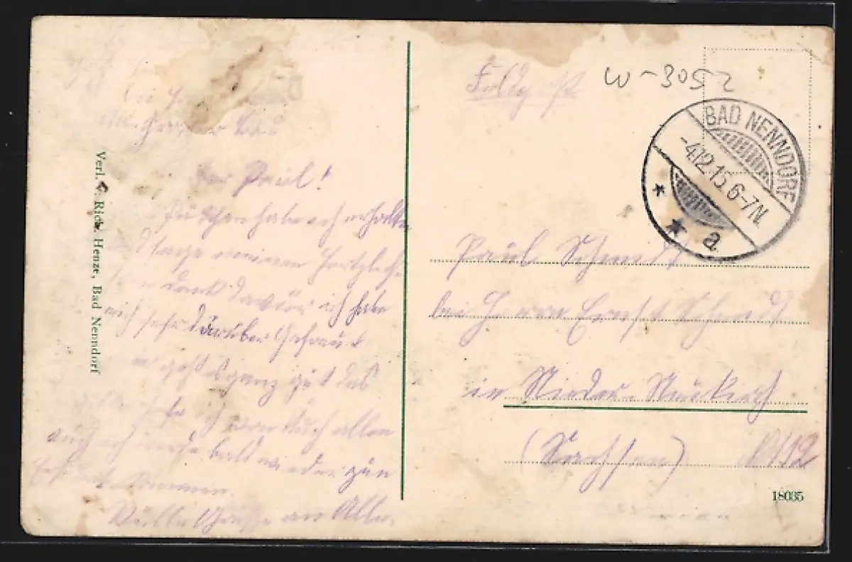 gelaufen 1915, Eckknick oben links, guter Zustand