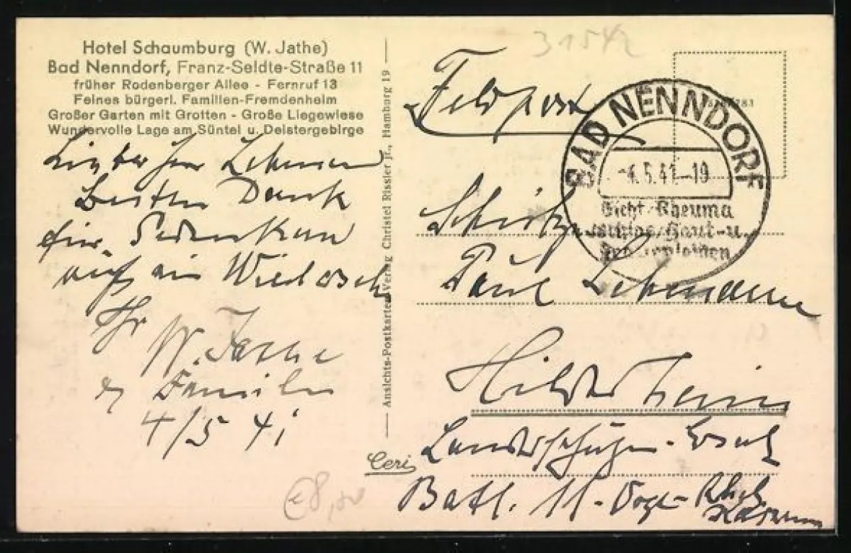 AK Bad Nenndorf, Hotel Schaumburg, Franz-Seldte-Strasse 11, W. Jathe