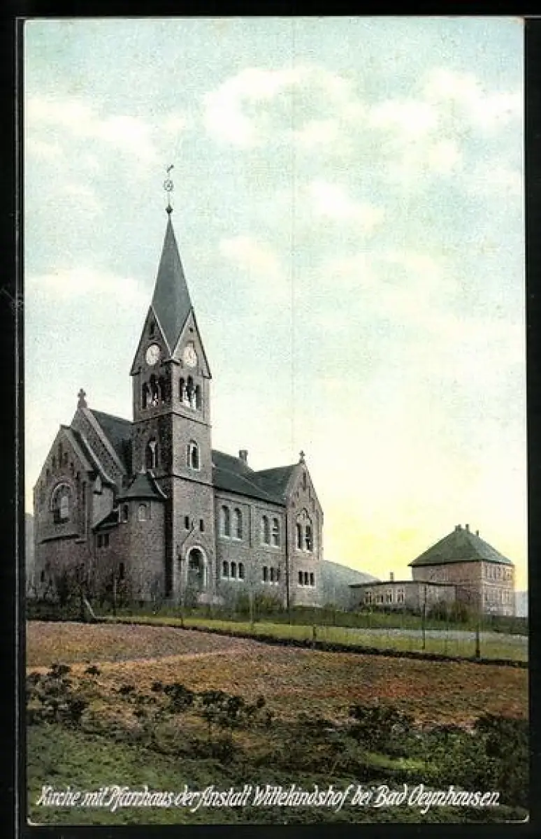 AK Bad Oeynhausen, Kirche mit Pfarrhaus der Anstalt Wittekindshof