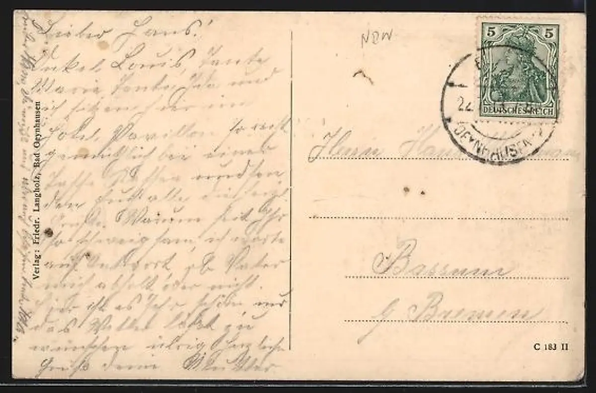 alte Ansichtskarte, gelaufen 1913, Eckknick li. unten, guter Zustand