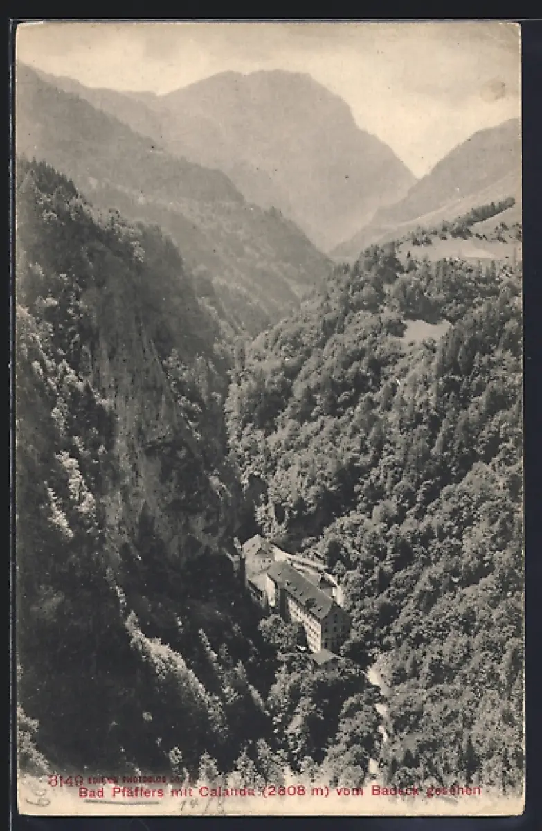AK Bad Pfäffers, Teilansicht mit Calanda vom Badeck gesehen