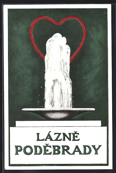 AK Bad Podiebrad /Lazne Podebrady, Rotes Herz über einem Sprudel