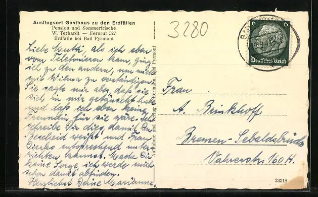 AK Bad Pyrmont, Ausflugsort Gasthaus zu den Erdfällen