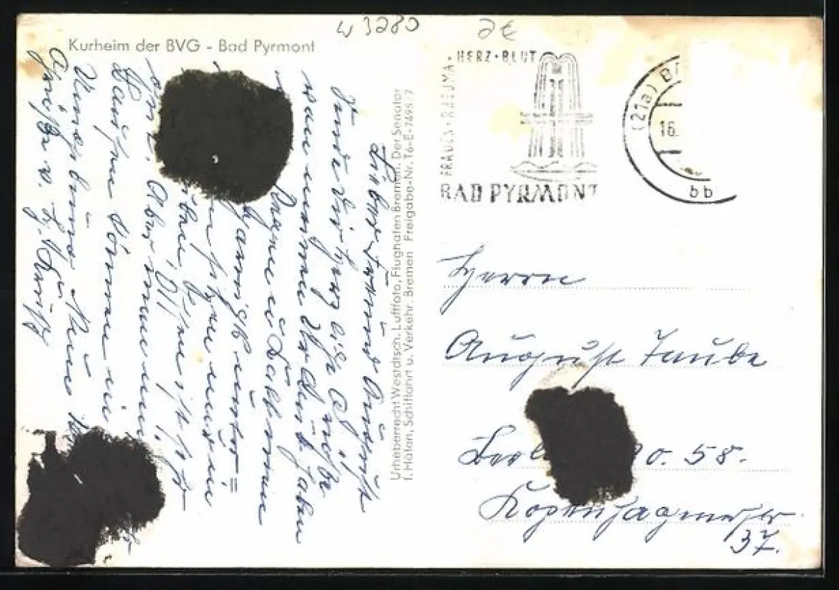 gelaufen, Eckknick li. unten, rückseitig Oberflächenschaden, Briefmarke entfernt, rückseitig Klebe- und Papierreste, guter Zustand