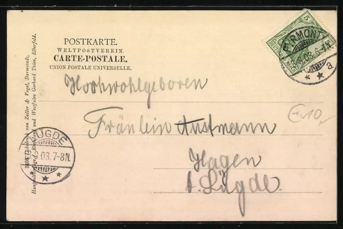 alte Ansichtskarte, gelaufen 1903, Stempelspur, guter Zustand