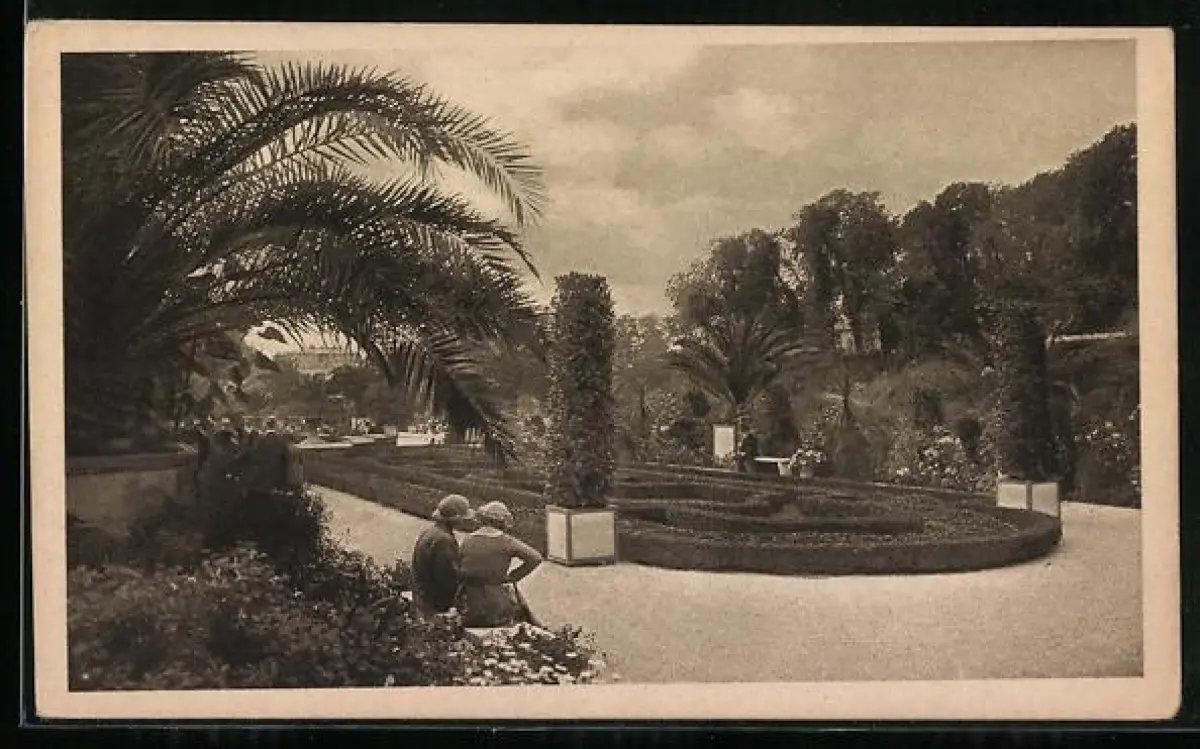 AK Bad Pyrmont, Palmengarten mit rastenden Besuchern