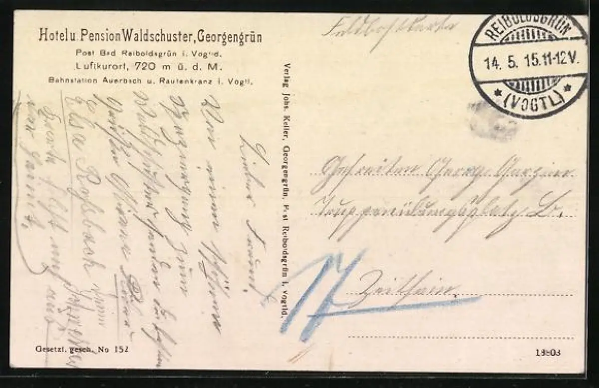 AK Bad Reiboldsgrün /Vogtl., Hotel u. Pension Waldschuster