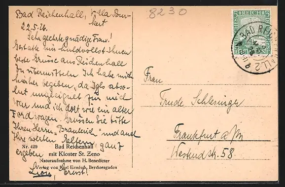 alte Ansichtskarte, gelaufen 1926, guter Zustand