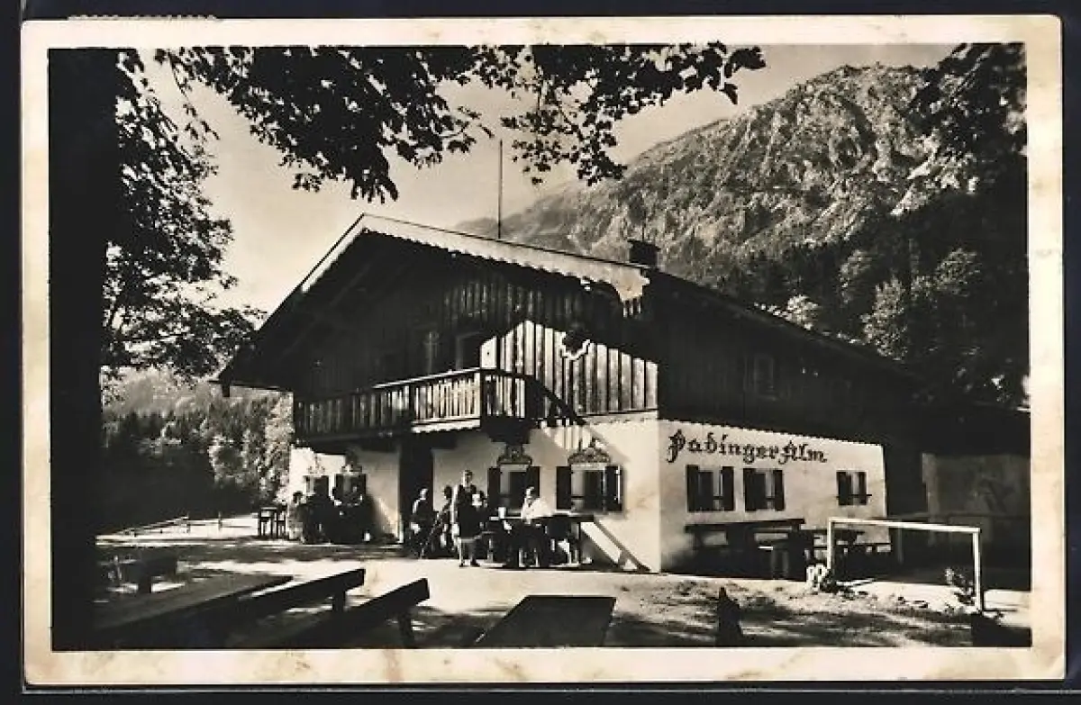 AK Bad Reichenhall, Gasthaus Padinger Alm mit Gästen