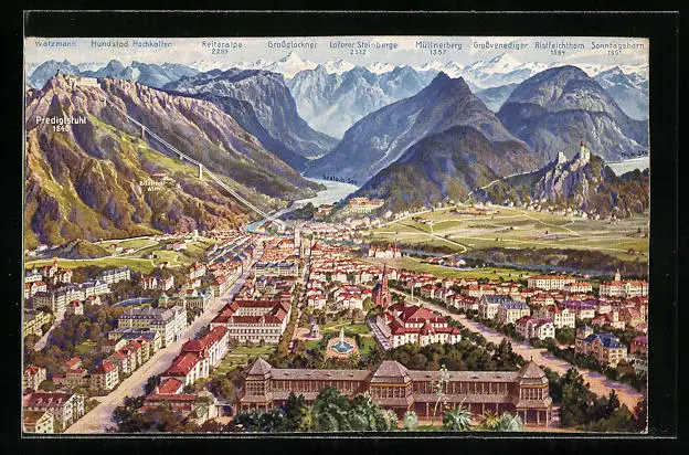 AK Bad Reichenhall, Ortsansicht mit Blick auf Bergpanorama