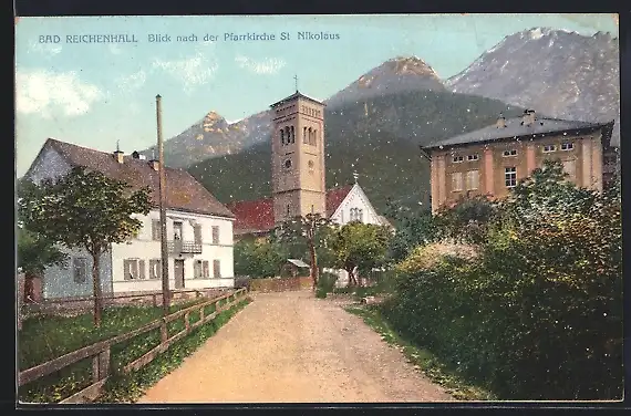 AK Bad Reichenhall, Strasse zur Pfarrkirche St. Nikolaus