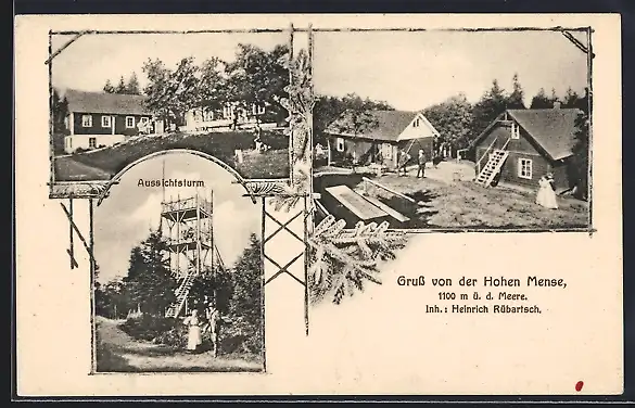 AK Bad Reinerz, Hohe Mense von Heinrich Rübartsch, Aussichtsturm