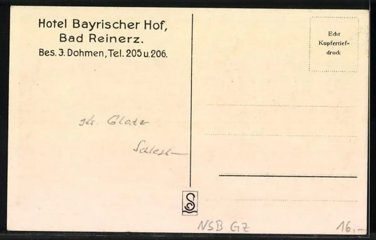 AK Bad Reinerz, Hotel Bayrischer Hof, Bes. J. Dohmen