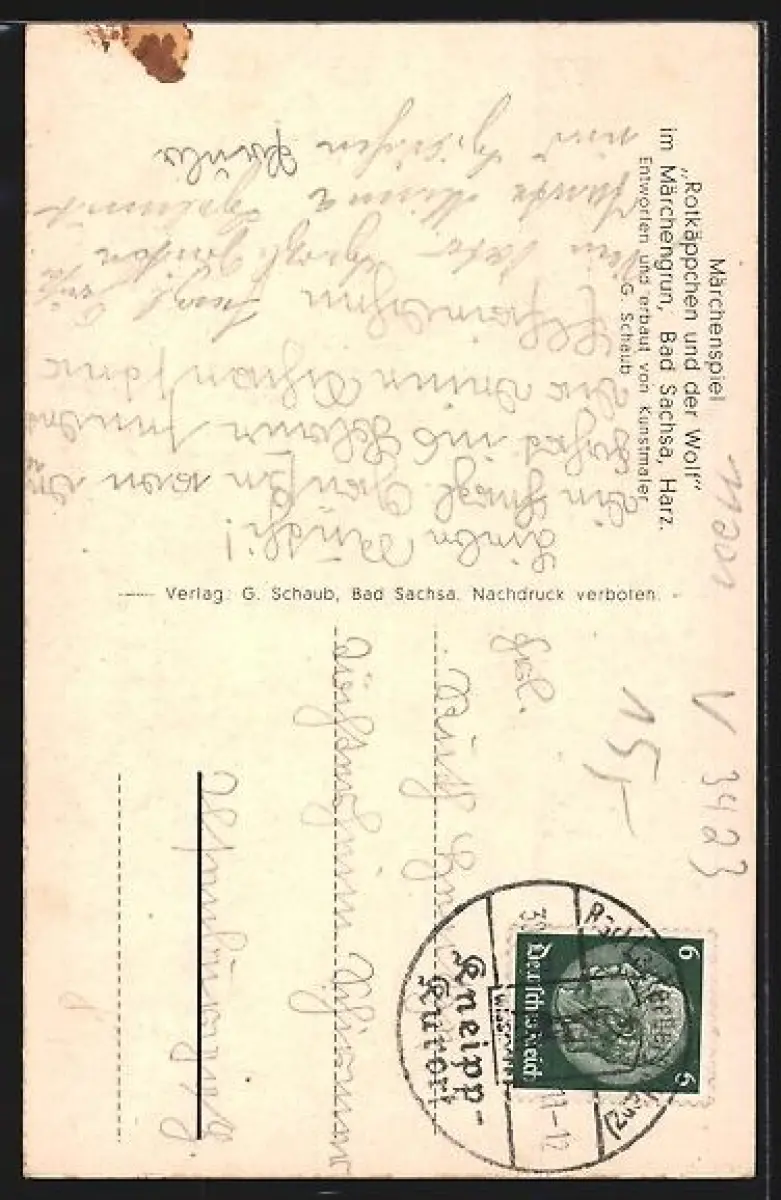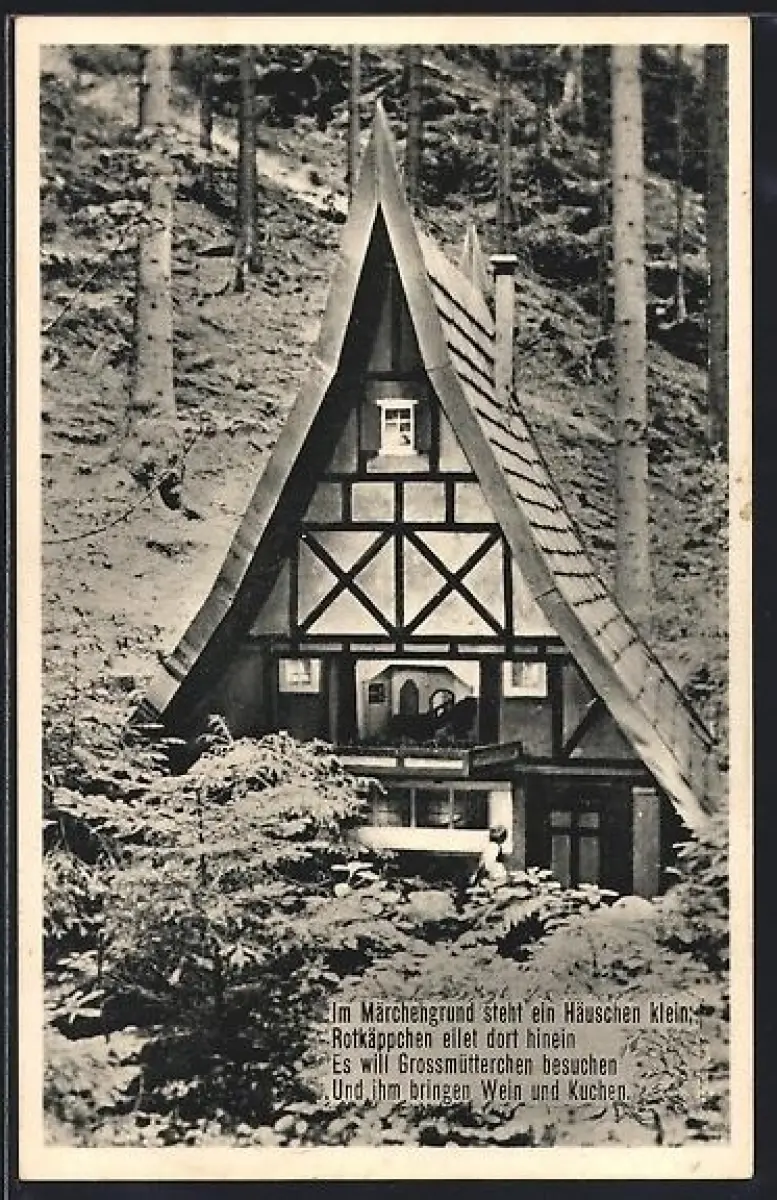 AK Bad Sachsa /Harz, Märchengrun, Rotkäppchenhaus, Märchenspiel Rotkäppchen und der Wolf