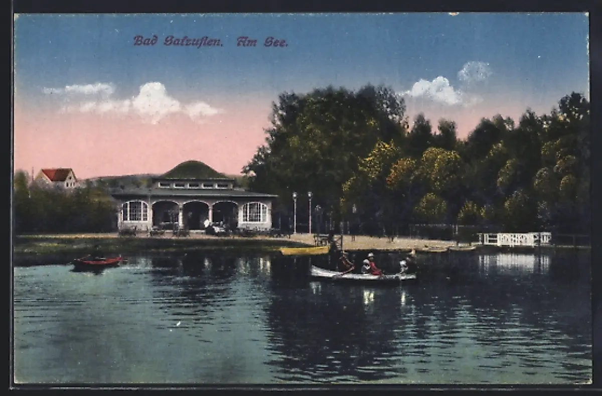 AK Bad Salzuflen, Partie am See mit Ruderboot