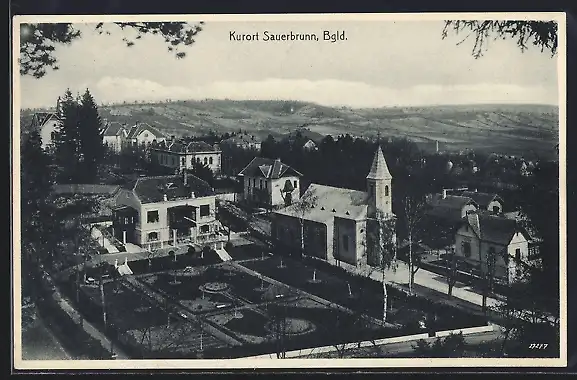 AK Bad Sauerbrunn, Ortsansicht aus der Vogelschau